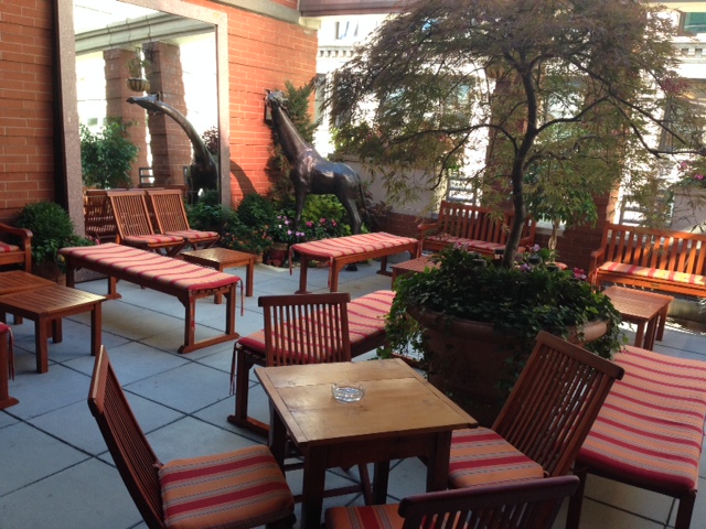 The rooftop bar is something special, it feels like an oasis in busy NY. Although quite small, there are wooden benches and chairs and they were playing loungy music. There is also a large giraffe (of course!) and we did like the amount of plants and flowers. The cocktails we had were very good and not too expensive.
