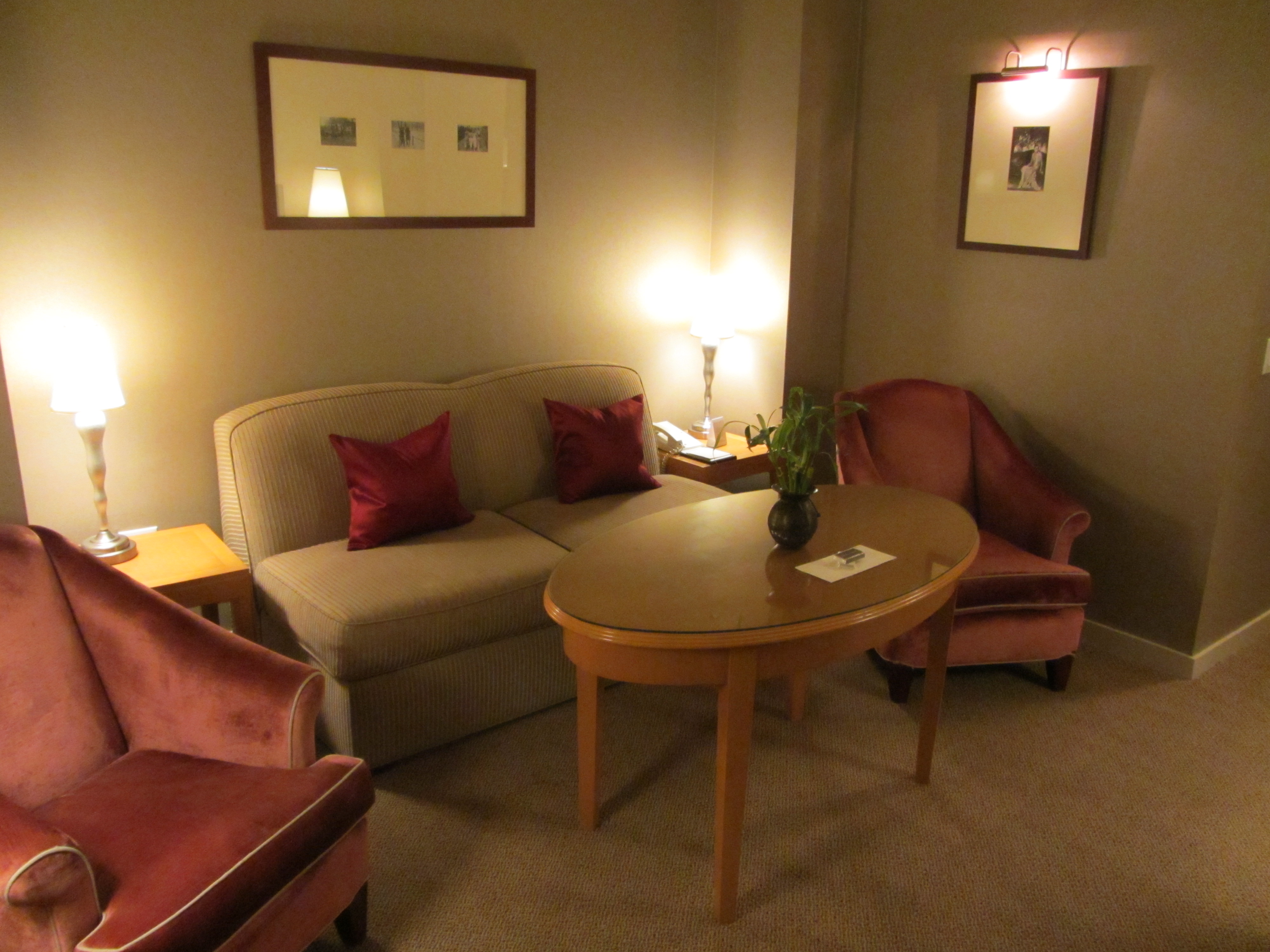 We stayed in a very spacious one bedroom suite and absolutely loved it! One nice detail: I loved the room key featuring a giraffe . As you enter the room, you will see a very cozy living area. After a full day in this hectic city, there is no better place than relaxing in those cozy couches. The bedroom is very large and has a very soft bed with plenty of pillows to choose from. The bathroom has a bathtub, single sink and a toilet. Bathrobes, an iPod-dock and espresso machine are there for your comfort. This room felt like a city apartment to us; it was so nicely decorated and had details we really liked such as books about giraffes, nice fresh flowers, etc.