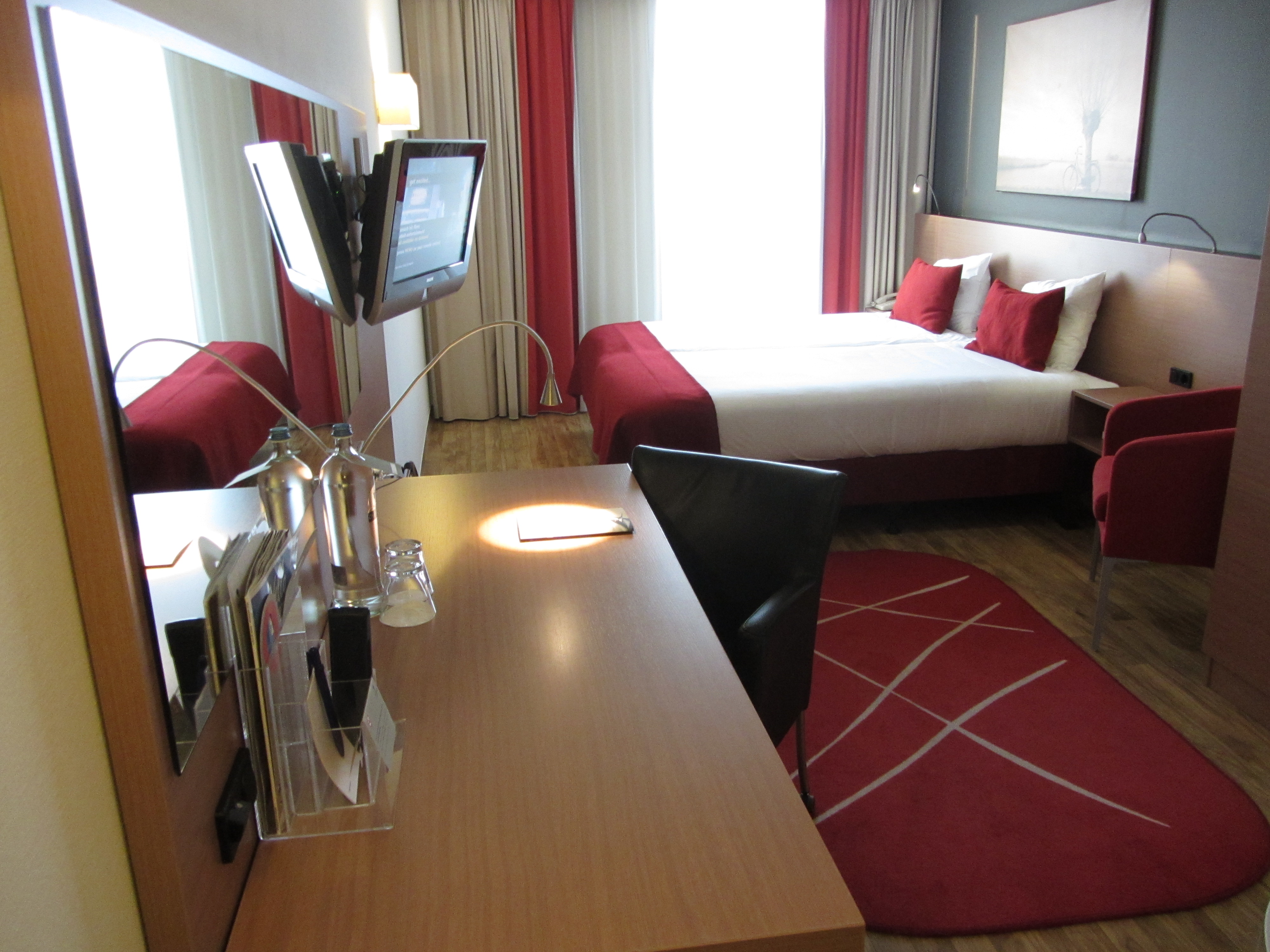 The Park Plaza Amsterdam Airport is a large and luxurious 4 star hotel located near Schiphol. It is a very large hotel but they make you feel at home as soon as you enter! It offers free shuttle service from/to the airport of Schiphol.