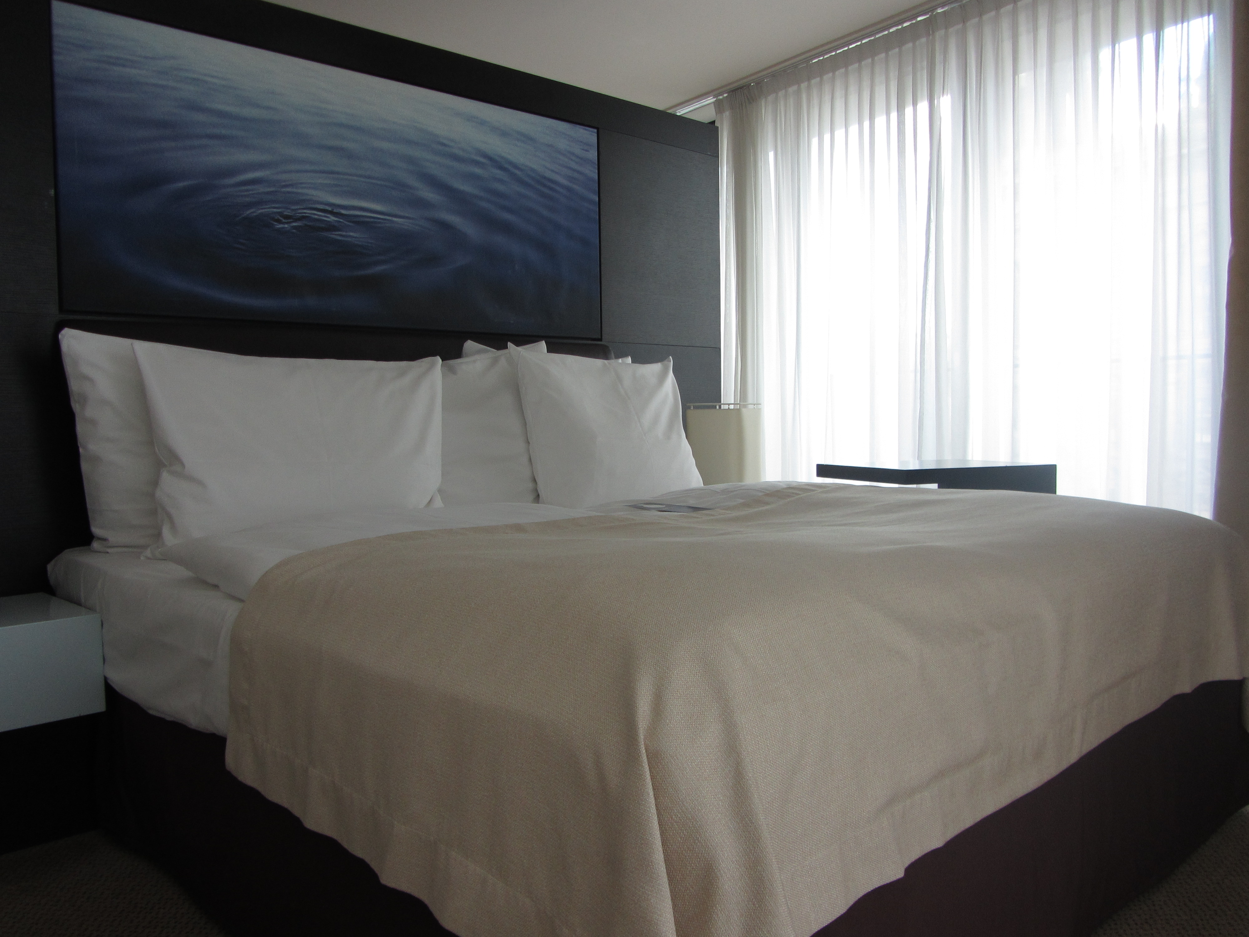We stayed in one of their junior suites. These corner rooms are very spacious (47 m²) and have a separate sitting and sleeping area, a large desk and king sized bed. The bathroom had double sinks, separate bathtub and shower. I appreciated the 2 flatscreen televisions and fully equipped minibar and Nespresso machine.