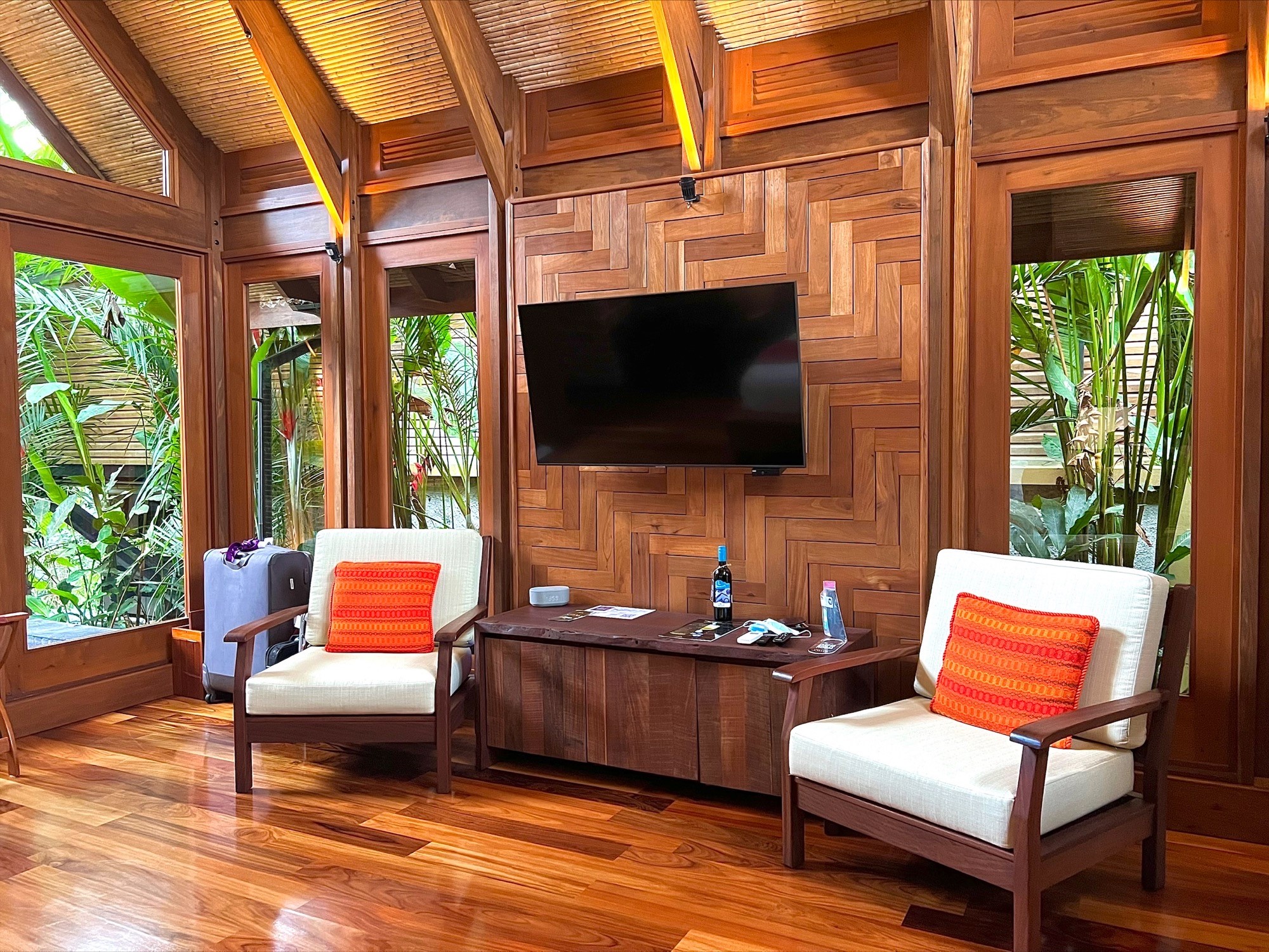 The dramatic entrance as I would call it, truly is spectacular. You enter the semi open lobby area and immediately notice the fantastic view all over the resort. I couldn’t believe my eyes, it is so beautiful… so peaceful and oh so romantic. When I think of Costa Rica, this is exactly what I would expect. Check-in was very efficient and personal. A welcome drink was offered and the administration only took a few minutes.