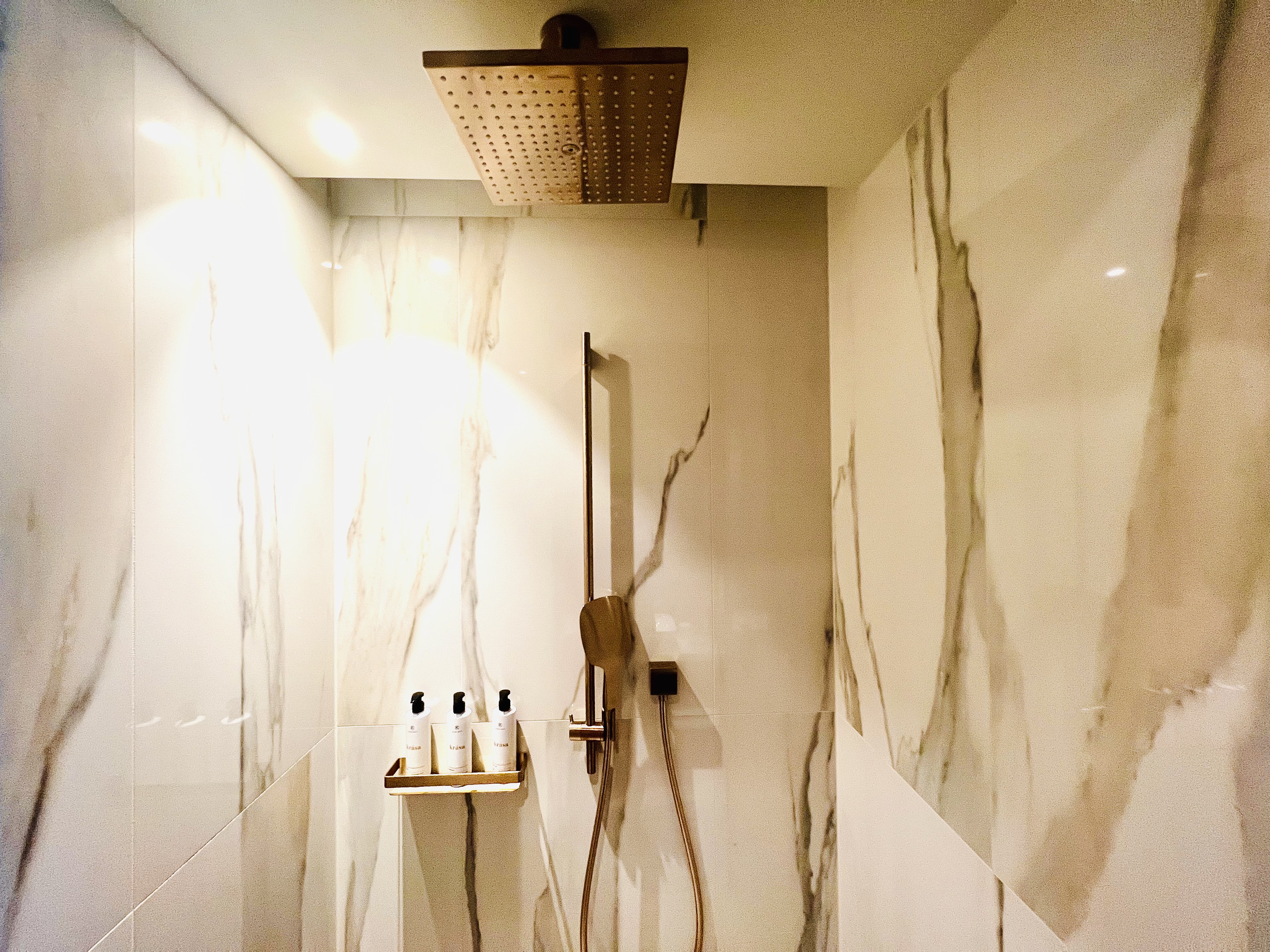 The bathroom – again, designed in an amazing way – had an oversized shower, large sink and separate toilet. Local toiletries by Krása were amazing!